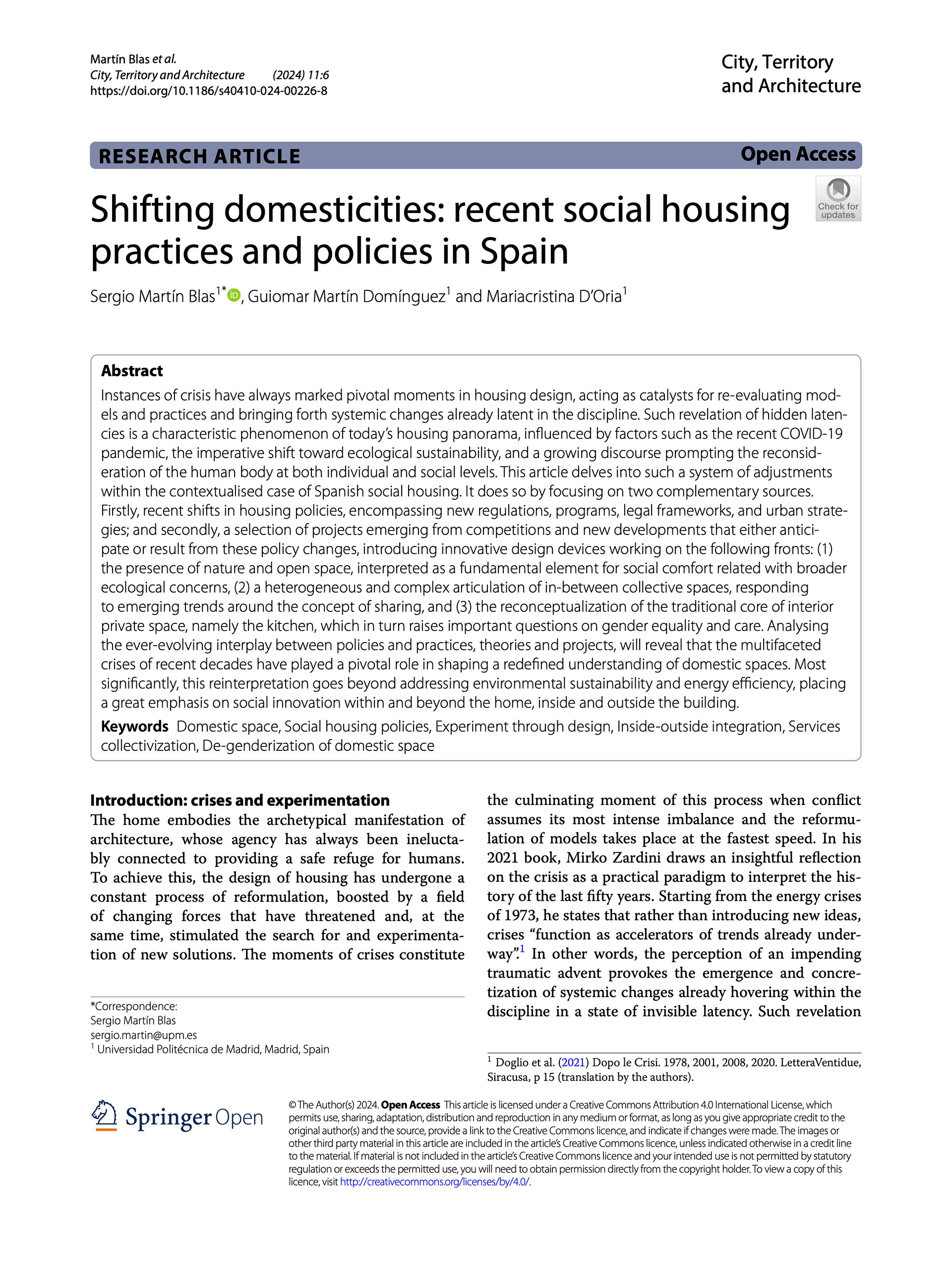 Shifting domestecities: recent social housing practices and policies in Spain | article on City, Territory, and Architecture, 2024